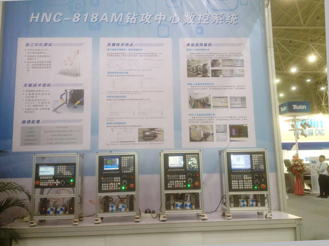 許多參展的機床企業(yè)展出了配置華中8型數(shù)控系統(tǒng)的機床,特別是深圳市德天機電設(shè)備有限公司展出了五臺高速鉆攻中心,全部配置華中8型數(shù)控系統(tǒng),氣勢喜人。