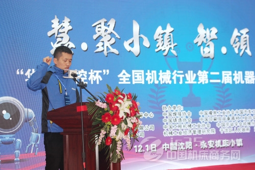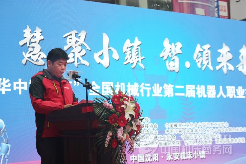 ?? ? ??在一陣極具科技感及創(chuàng)意的動感熱舞“機器人百年史”中,本次開幕式正式拉開帷幕。中共沈陽市于洪區(qū)委副書記、于洪區(qū)人民政府區(qū)長王慶海,機械工業(yè)職業(yè)技能鑒定中心主任史仲光,武漢華中數(shù)控股份有限公司副總裁熊清平分別致歡迎辭。