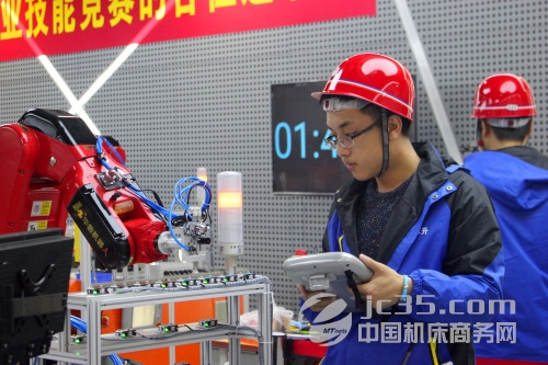 ?? ? ??據(jù)中國機床商務(wù)網(wǎng)記者現(xiàn)場了解,本次大賽使用的技能鑒定競賽平臺是由華中數(shù)控依托《工業(yè)機器人操作調(diào)整工標準》而設(shè)計研發(fā)的,包含操作工和技師模式。競賽平臺集成HSR-JR605六軸機器人、自動上料模塊、視覺檢測模塊、立體倉庫模塊、噴涂模塊(含旋轉(zhuǎn)軸)、碼模塊、總控系統(tǒng)模塊。該競賽平臺要求參賽選手根據(jù)競賽任務(wù)要求,在規(guī)定的時間內(nèi)完成夾具安裝與調(diào)整、機器人示教編程、視覺系統(tǒng)調(diào)試、控制系統(tǒng)調(diào)試、總控系統(tǒng)調(diào)試等競賽任務(wù),同時也可滿足工業(yè)機器人專業(yè)的日常教學需求。