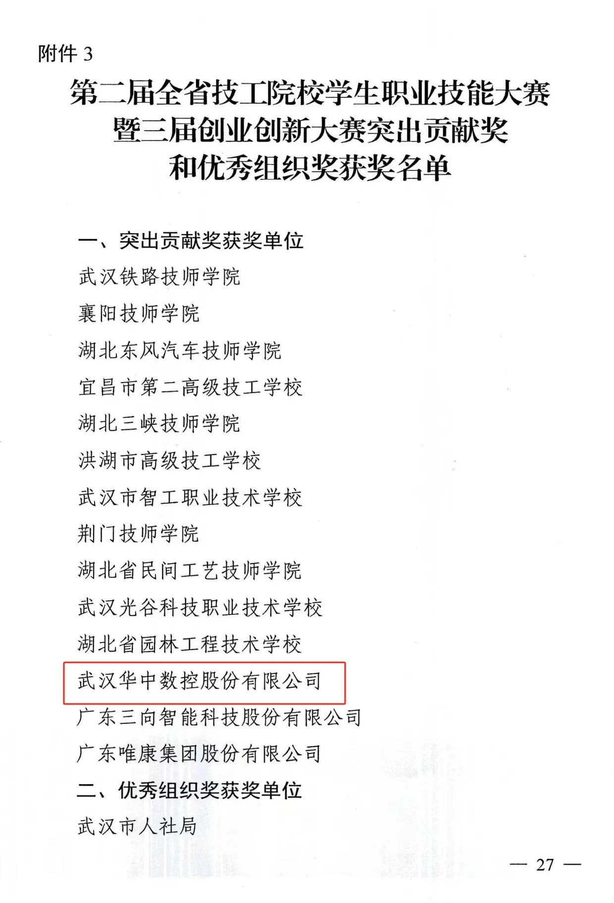 近日,湖北省人社廳發(fā)布關于表揚2023年“湖北工匠杯”技能大賽——湖北省第二屆技工院校學生職業(yè)技能大賽暨第三屆創(chuàng)業(yè)創(chuàng)新大賽獲獎選手和單位的通報,華中數(shù)控獲湖北省第二屆全省技工院校學生職業(yè)技能大賽暨第三屆創(chuàng)業(yè)創(chuàng)新大賽...