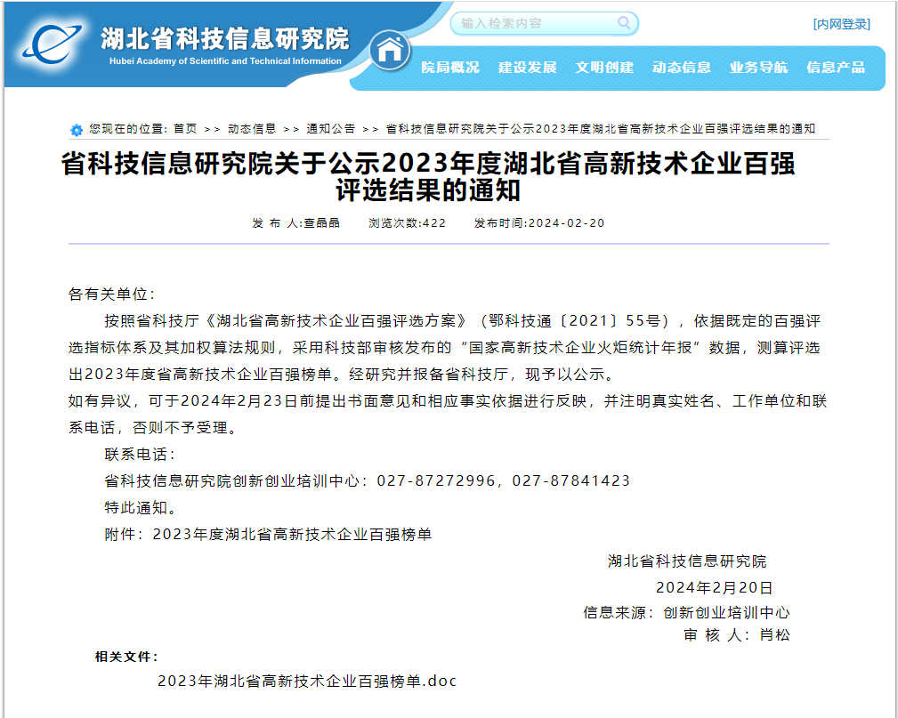 近日,湖北省科技信息研究院發(fā)布《省科技信息研究院關于公示2023年度湖北省高新技術企業(yè)百強評選結果的通知》,武漢華中數(shù)控股份有限公司入選2023年度湖北省高新技術企業(yè)百強名單。省科技信息研究院關于公示2023年度湖北省高新...